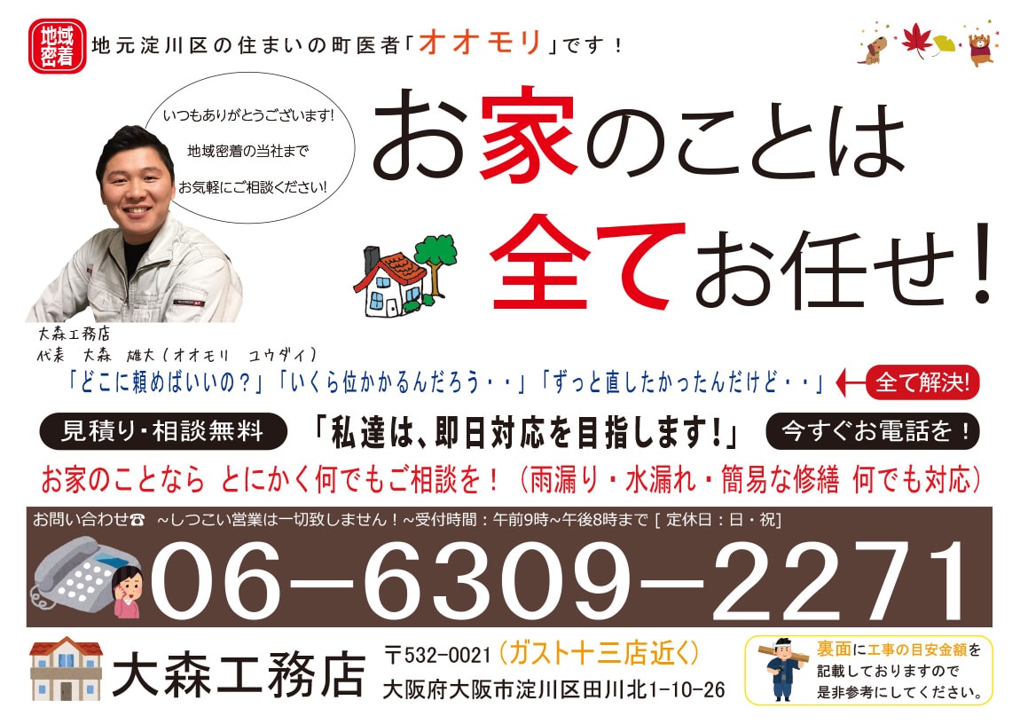 しかも、大森工務店は『淀川区とその周辺地区』で1,000軒以上の施工実績を持っている、長く地域に根付いた工務店なので、とっても安心!