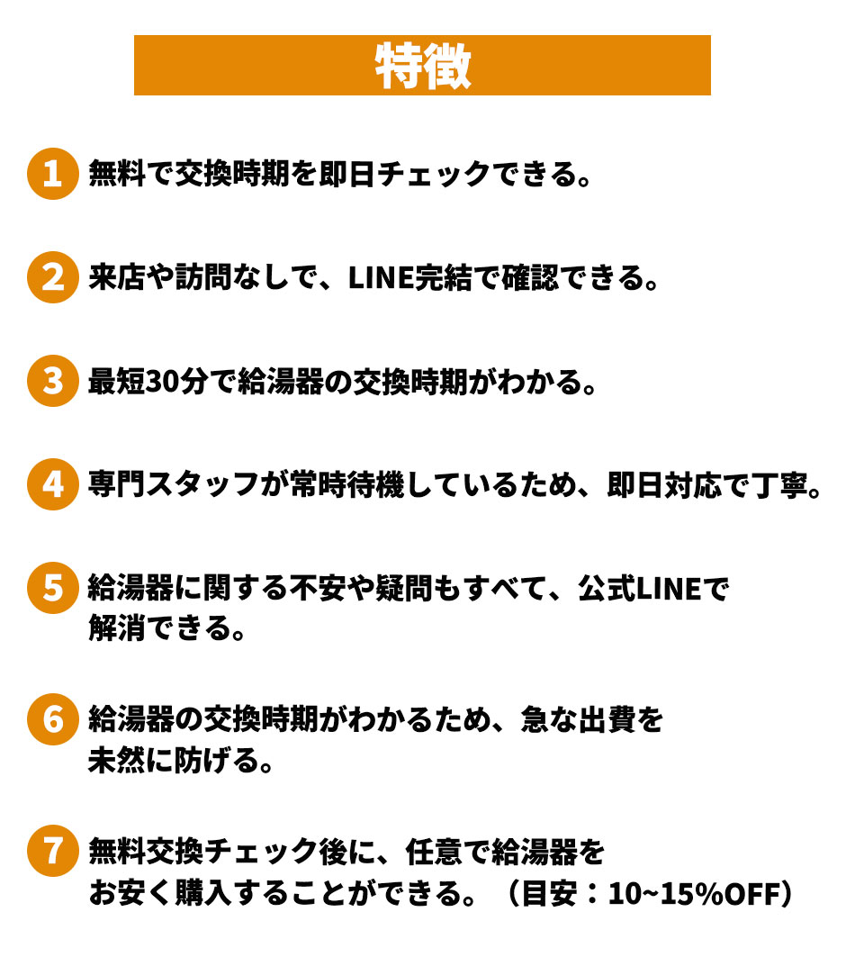 大森工務店の方に教えてもらった「給湯器の無料交換チェック」は、